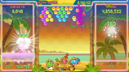 Next Gaming, LLC has reimagined classic arcade games to bring excitement and nostalgia to your casino slot floor! Bust-A-Move™ is a familiar match three game brought to you in collaboration with Taito Corporation. First, players will select their level of difficulty from easy, normal or hard. Players will start each level with an intricate layout of colored bubbles and with the help of Bub and Bob, the player will launch the bubbles from the harpoon to try to match and pop three bubbles of the same color. To increase the level of excitement the player will race to clear the level against a slowly dropping ceiling. Bust-A-Move™ delivers traditional slot performance while bringing back the competitiveness of the arcade experience. Post your initials on the leaderboard to earn your bragging rights!